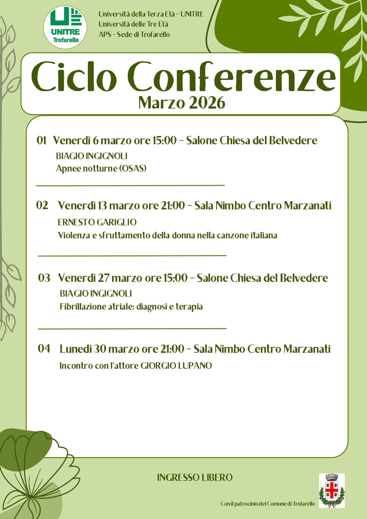 altri due incontri pomeridiani con il Dott. Lupano Franco, sulle apnee notturne venerdì 06 marzo e sulla Fibrillazione atriale il 27 marzo – ore 15:00 al Belvedere